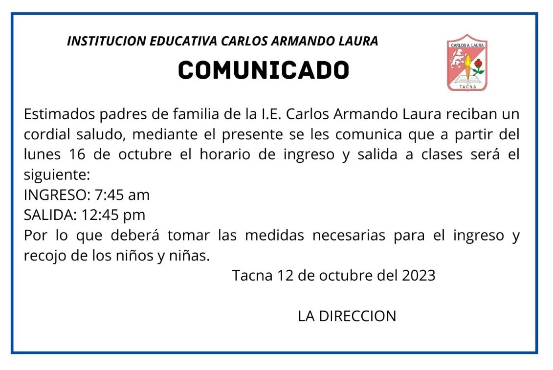 Comunicado nivel secundario, cambio de horario a partir del Lunes 16 de octubre de 2023